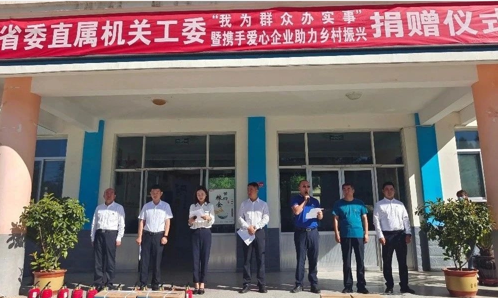 為積極履行企業社會責任,關注支持貧困地區教育事業發展,8月20日,甘肅安卓工程技術有限公司基金會小分隊來到臨夏州康樂縣八松鄉龔莊小學參加省委直屬機關工委“我為群眾辦實事”暨攜手愛心企業助力鄉村振興捐贈活動??禈房h常委副縣長 劉煒、康樂縣八松鄉黨委書記 馬虹、八松鄉龔家莊村第一書記兼駐村工作隊隊長 馬雍穎等領導出席捐贈儀式。