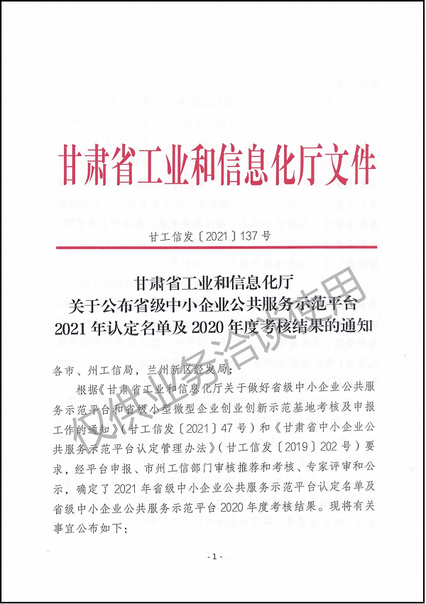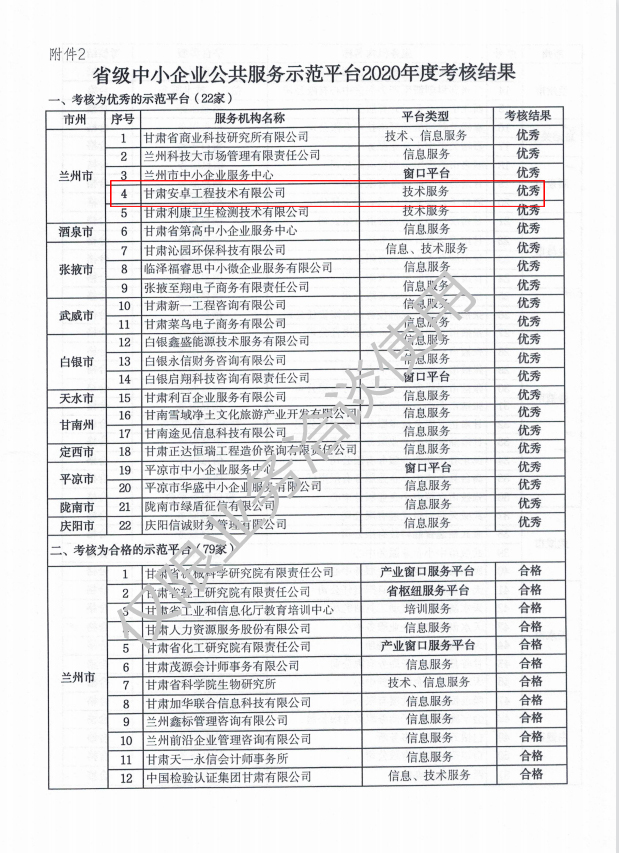 省級中小企業公眾服務示范平臺考核結果