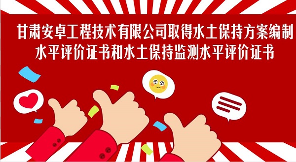 甘肅安卓工程技術(shù)有限公司根據(jù)相關(guān)文件和辦法申請(qǐng)參加了2018年度水土保持方案編制和水土保持監(jiān)測(cè)水平評(píng)價(jià)證書(shū)申報(bào)工作。近日,中國(guó)水保學(xué)會(huì)公布了評(píng)審結(jié)果,我公司順利獲得水土保持方案編制水平評(píng)價(jià)證書(shū)和水土保持監(jiān)測(cè)水平評(píng)價(jià)證書(shū)。水平評(píng)價(jià)證書(shū)是對(duì)我公司水保技術(shù)實(shí)力的認(rèn)可和肯定。